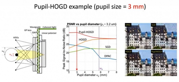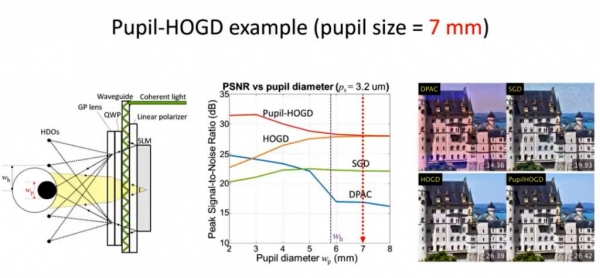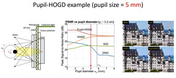 仿真结果表明,与双相位幅度编码(DPAC)随机梯度下降和传统的 HOGD 算法相比,瞳孔 HOGD 算法在所有瞳孔大小下的图像质量最好。