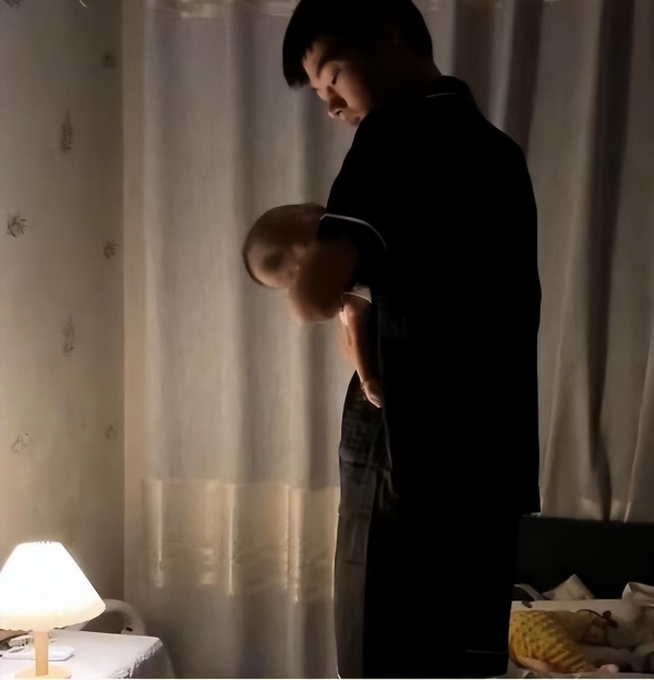 从画面中也可以看到,男子边哄着宝宝,边不停地打哈欠,揉眼睛,空出一只手拿着手机,看看几点钟,想必他也是很难受。