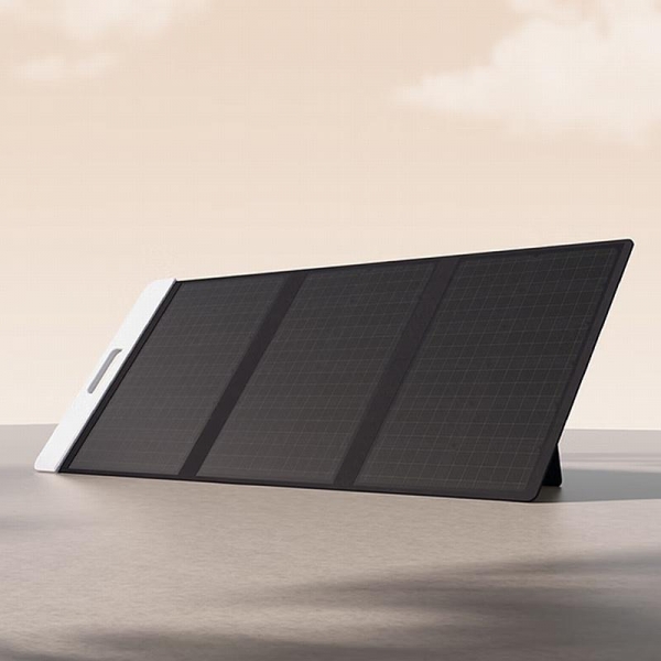 小米也同步发布了米家太阳能板 100W,它采用折叠式结构设计,3 片折叠模式外带更加便携,背部带有支撑板方便调节角度对准太阳,获得更佳的光伏转化率。支持两块太阳能板并联后对米家户外电源 1000Pro 充电(200W Max)。
