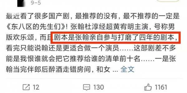 虽然这部剧被指台词剧情低俗,是为了满足张翰油腻的幻想,但是当初宣传的时候,剧方称这部剧的剧本精心打磨了多年。