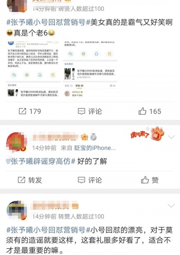 有许多网友看到该言论后,没有听信该账号的一面之词,而是赞赏张予曦的行为,认为她回怼得很霸气。