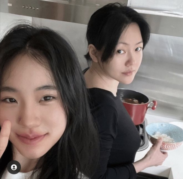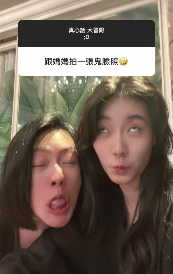 前一天晚上,Lily还分享了和妈妈一起扮鬼脸的照片,两人吐舌翻白眼,画风一致,与其说是母女,不如说是爱玩的姐妹花。