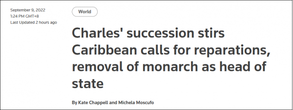 报道提到,在15至19世纪期间,超过1000万非洲人成为欧洲国家跨大西洋奴隶贸易的受害者,那些幸存下来的人被迫在加勒比和美洲的种植园里贩卖苦力。如今查尔斯继承英国国王之位,再次激起了加勒比地区要求英国赔款,废除英国国王作为国家元首的呼声。