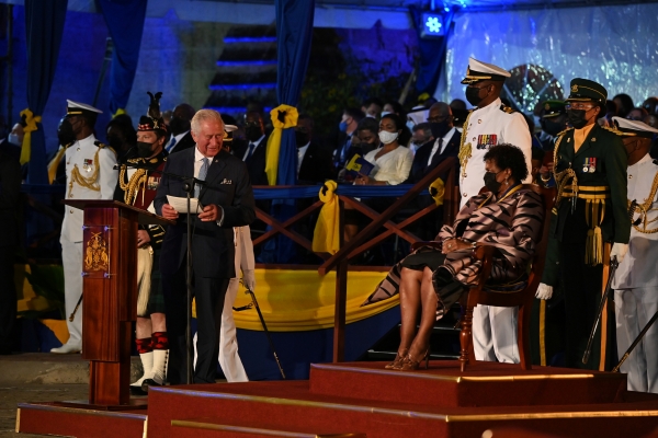 2021年11月30日,巴巴多斯总督桑德拉·梅森宣誓就任该国第一任总统,查尔斯到场见证了这一转变。澎湃影像平台