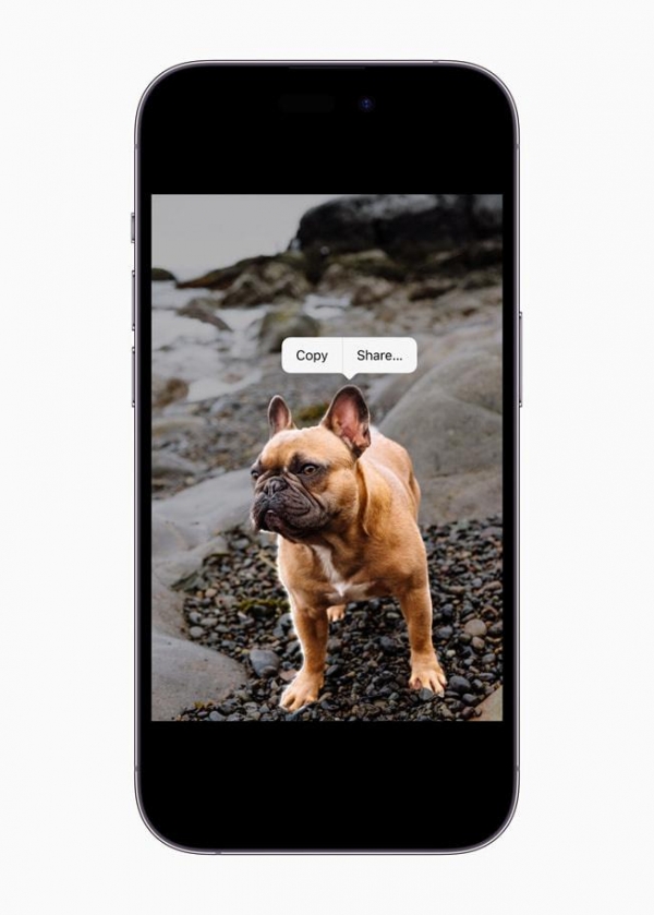 用户现在可以点击并按住图片主体将其从背景中移出,再放置在信息等 App 中。
