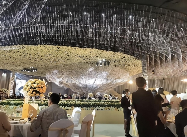 在结婚现场也是处处都透露着不平凡,整个礼堂布置的金碧辉煌,很是奢华,现场铺满了鲜花,水晶吊灯更是一圈围着一圈,就这个场地和一些布置的东西就看出,为了这场联姻,丁思榕的父母和家人一看就是下了很大的功夫。