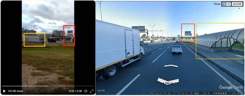 左:视频截图;右:谷歌街景图。