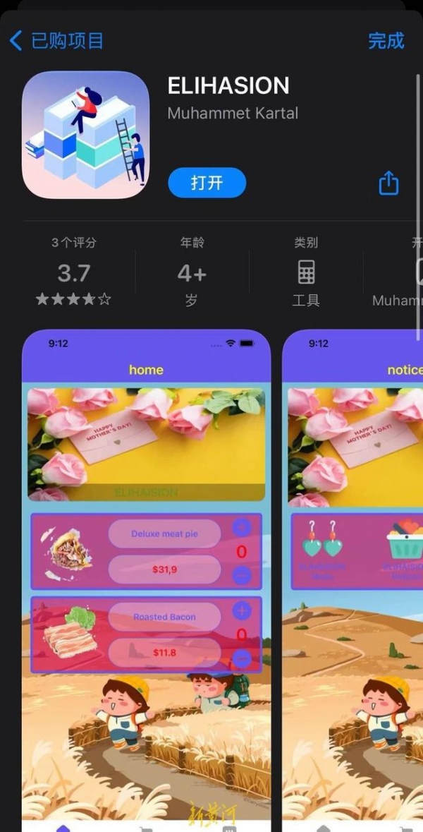近日,有市民向记者反映,在苹果应用商店内,有不少成人 App 可以下载,随后便向记者提供了该软件的下载地址。新黄河记者扫描二维码后,便跳转到一款名叫 "ELIHASION" 的 App,无论从锻件名称还是相关软件的展示内容来看,该软件都属于计算工具类软件。