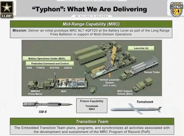 在陆军方面,这种路基机动垂发系统将会被陆军作为其未来的"台风"系统的一部分使用,美国陆军将会主要使用该系统进行陆基战斧导弹的发射。