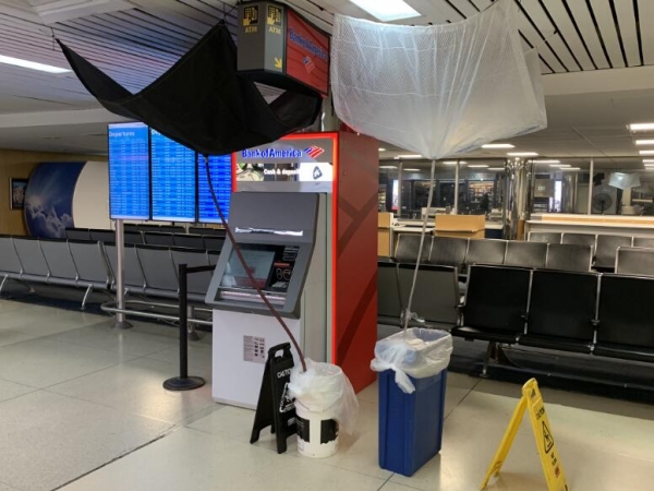 老拉瓜迪亚机场的天花板漏水以及处置堪称一景。(资料图)