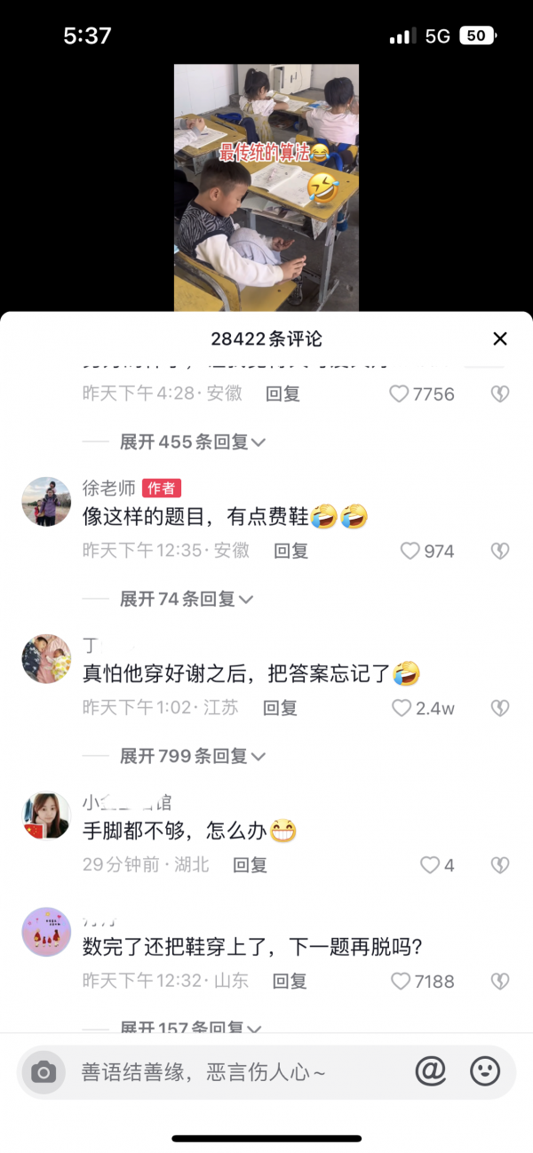 大皖新闻记者注意到,视频下方,网友们纷纷表示太好笑了。"真怕他穿好鞋之后把答案忘记了。""数完了还把鞋穿上,下一题再脱吗?""能算对就行。""认真的态度值得表扬。"