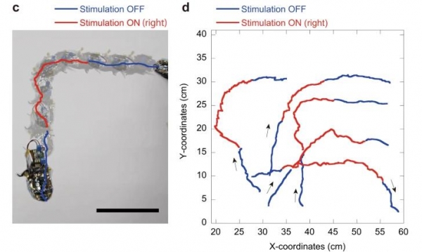 根据实验观测数据,这只蟑螂基本就像台 " 遥控车 " 一样,任人摆布。