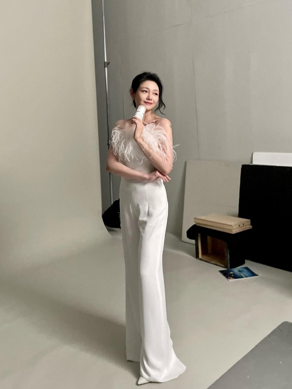 在照片中,,大S身穿白色抹胸穿裙,将头发盘在脑后,而站在镜头下的她显得是那样优雅,尤其是她摆出的姿势,头部微微抬起,脸上露出淡淡的微笑,整个五官看上去非常的精致,大大的眼睛,充满了故事感,身材也是特别的好,前凸后翘很是火辣。