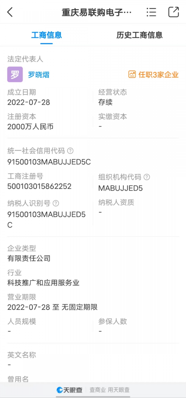"易联购"涉事公司从成立到"跑路"不满两个月 天眼查App截图