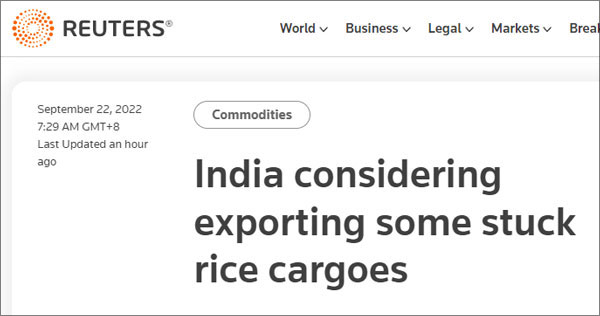 此前为确保本国粮食供应,印度曾宣布自9月9日起,禁止碎米出口并对蒸谷米和印度香米以外的大米征收20%出口税。据路透社报道,此举致超100万吨的粮食滞留在印度港口。