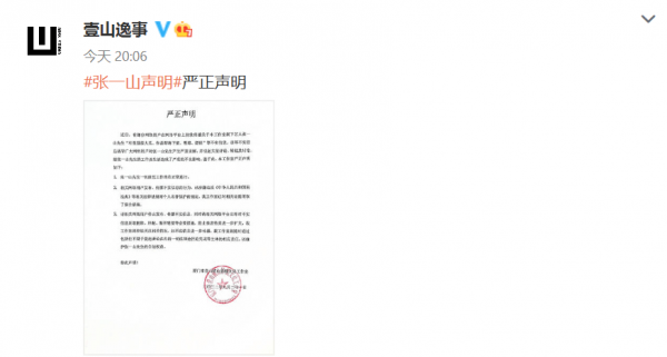 其声明中否认了吸毒、嫖娼等信息,表示张一山一切演艺工作均在正常进行。