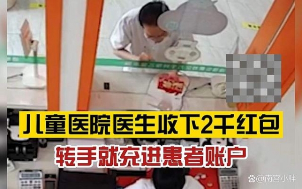 9月21日,安徽合肥一儿童医院的郭医生来到缴费窗口,将一个喜庆的红包递给工作人员,称把红包里的2000元钱交到患者的住院账户。视频记录下了这一幕。