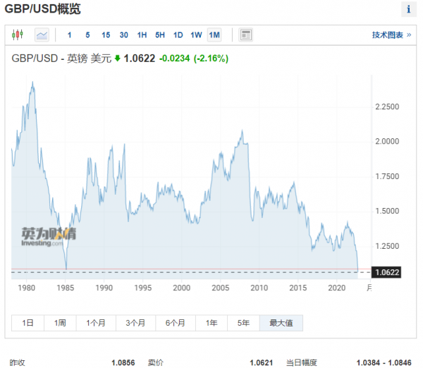 英镑汇率跌破1.04关口 图源英为财情