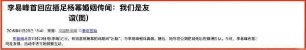 之后,关于两人的绯闻就开始在圈里传得沸沸扬扬,两人也做出了回应,尤其是李易峰,更是宣称他们之间是"革命的友谊"。