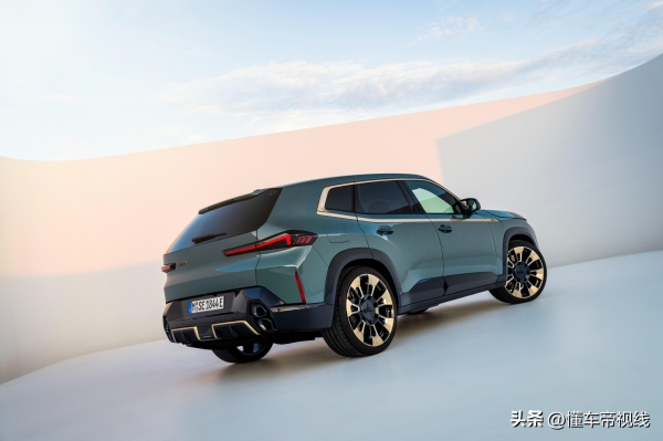 尾部造型也是非常激进,L型LED尾灯在宝马家族车型中已经比较常见,此次在XM上又有演化,并搭配了三条代表M品牌的装饰灯。当然,你的视觉焦点很难从它的双边共四出式排气筒上移开,它的战斗值已拉满。充电口设置在主驾驶侧前翼子板处,遍布车身的金色装饰线条为车身增添了贵气。