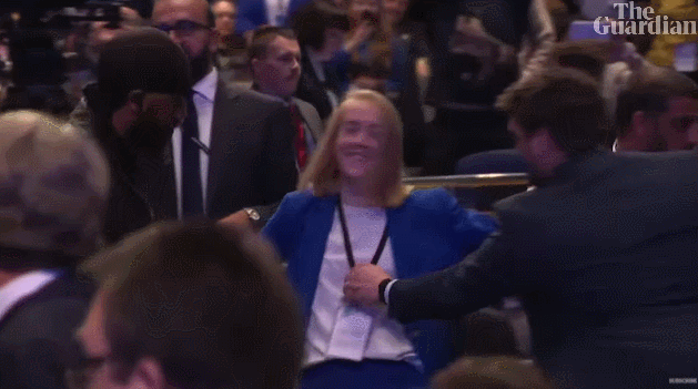 对此,特拉斯只说了句"把她们弄走",随后安保人员便在保守党成员的嘘声中把抗议者赶出了会议大厅。