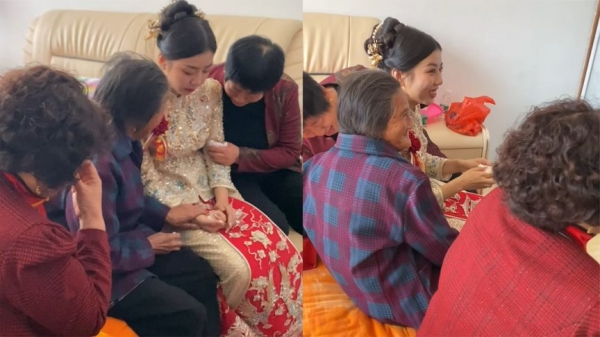 【女子出嫁长辈们围坐在一起大哭,下一刻全体却开怀大笑,原因让人意想不到】10月6日。湖北黄石,在黄石,一女子出嫁长辈们围坐在新娘身旁大哭,正哭得伤心的时候,突然老奶奶阿姨们都大笑起来。
