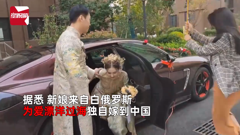 10月9日,安徽,一段俄罗斯美女远嫁中国的视频引起关注,视频中新娘身穿嫁衣手拿捧花颜值颇高。