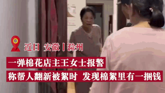 【已故父亲在棉被里藏8万现金,女子毫不知情送去弹棉花,店主报警】近日,安徽滁州。一棉絮店店主发现客人送来的被子里竟藏有8万元现金,店主王女士立即报警。