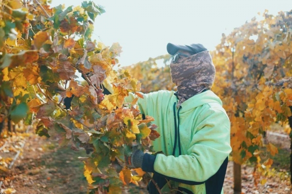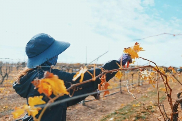 葡萄园的工作有剪枝、拉枝、盖布等。盖布可称得上是最累的了,不仅需要凌晨两三点起,还得追着机器跑,用手补钉。盖布时需留一百个心,避免手被卷进机器里。