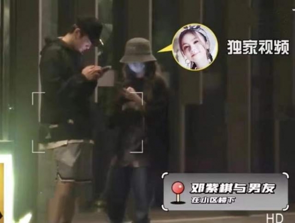 视频中邓紫棋与男友Mark在自己的小区楼下等车,两人面对面各自玩手机,谁也不理谁,不得不说这种行为真的是小情侣日常了。