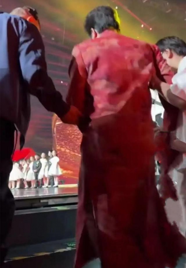 在即将上台时,李玉刚也是艰难的从轮椅上站起来,身旁的工作人员也是赶忙上去搀扶,就这么一步一步地走到台前,为大家演唱歌曲,看得出李玉刚老师是十分敬业的,哪怕是有腿伤,坐在轮椅上也是要坚持表演完节目。
