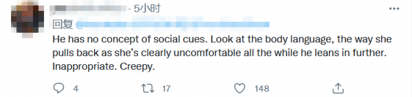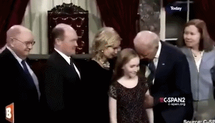 推特上大部分美国网民对于拜登的行为感到不安和困惑,"他对社交暗示毫无概念。看看女孩的肢体语言,她向后缩的样子,很明显她对拜登往前凑的动作非常不舒服。这么做不合适的,令人毛骨悚然。"