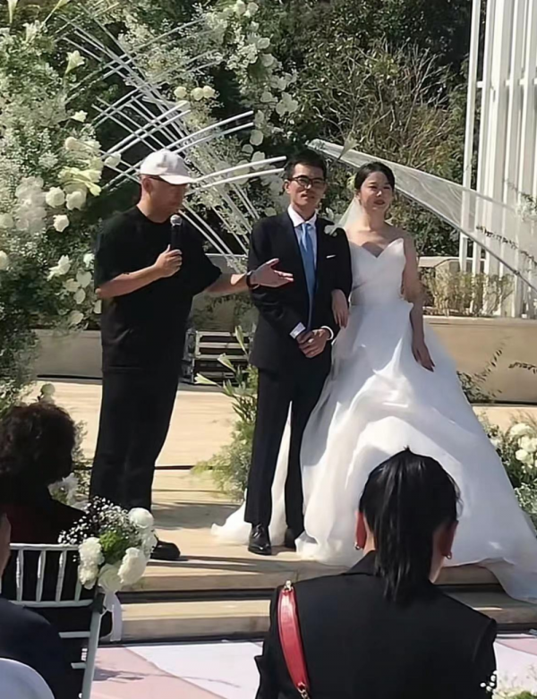 孟非不愧是见过大场面的主持人,他丝毫不理会外界的喧闹,用真挚的话语讲述了身旁这对新人的爱情故事。虽然是出席婚礼这样的大场合,孟非却没有精致打扮,他穿着一套黑色的休闲装,头上戴着一顶棒球帽,不知道的还以为是下楼遛弯的大爷。