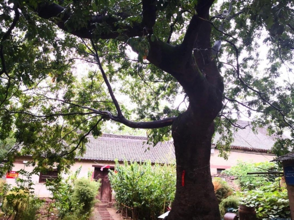 在朱紫峰宅院西院四进的长工院,有棵一搂多粗的皂角树,枝繁叶茂,树旁的牌子上写着"皂角树植于明万历年间,是由朱氏先祖从山西带来的'思乡树'。树龄近500年,树围2.6米。"