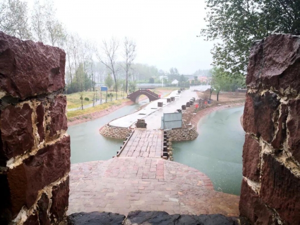 潺潺的流水,配着古色古香的明清建筑群和环村红石寨墙,勾画出一幅古寨水乡的优美画卷,再现临沣寨人文生态景观。