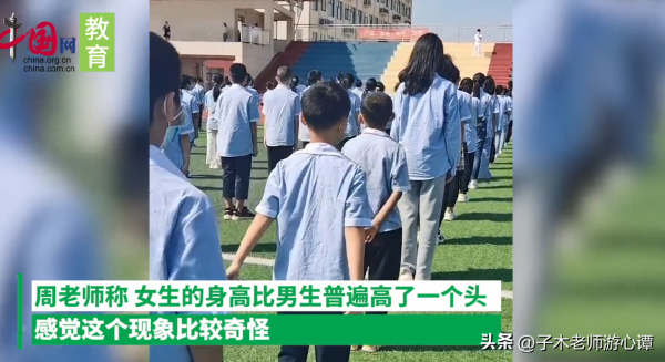 一般来说,女生发育早些,到了初三后,很多女生的个子就长得很慢了,甚至不长了;而男生呢,从初一开始几乎一天一个样,有的初中三年可以长高三四十厘米,有的到了高中还在长,长到一米七八的不在少数。
