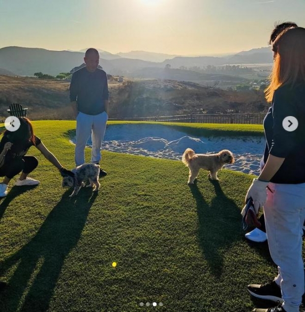 另外她分享了和家人一起在山头欣赏日落的场景,说实话,西米的风景线真的非常好。尤其是徐静蕾和家人在一起看着两只宠物狗,这一种国外的惬意生活令人羡慕。