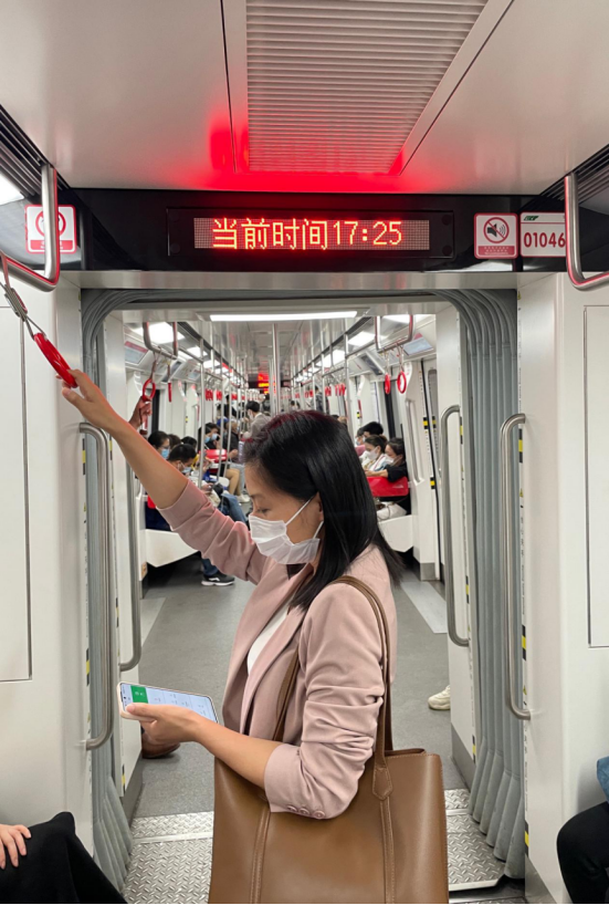 17:25,六六终于乘坐轨道交通,通往回家的方向。