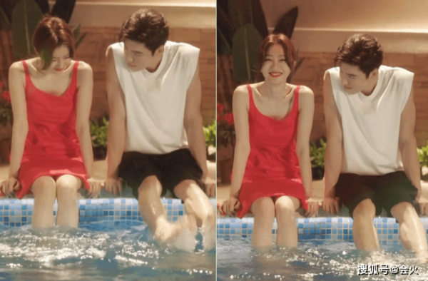 除了有浪漫室内激情吻以外,其官方账号还晒出了两人的泳池互动花絮。相比起直球吻戏,两人泳池旁的暧昧拉扯氛围感含蓄极了。画面中两人穿着清凉坐在泳池边戏水,男方全程眼神焦距在秦岚身上,故意踢水逗得秦岚露出羞涩笑容,郎才女貌互动超养眼。