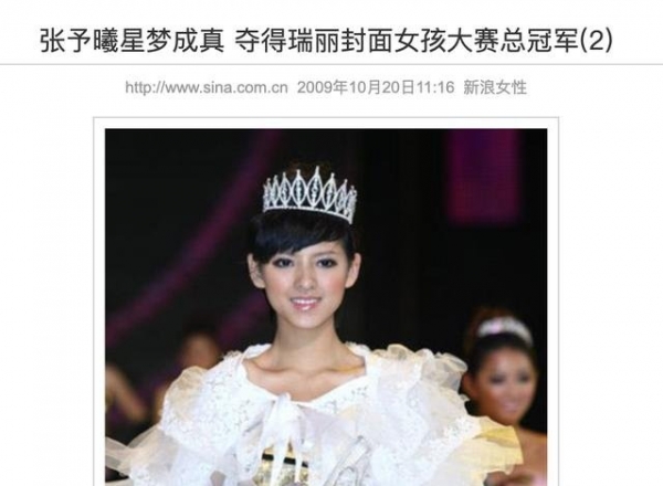 因为"主动公开自己和王思聪恋情"而打响了第一波知名度的张予曦,2009年的封面模特比赛冠军。