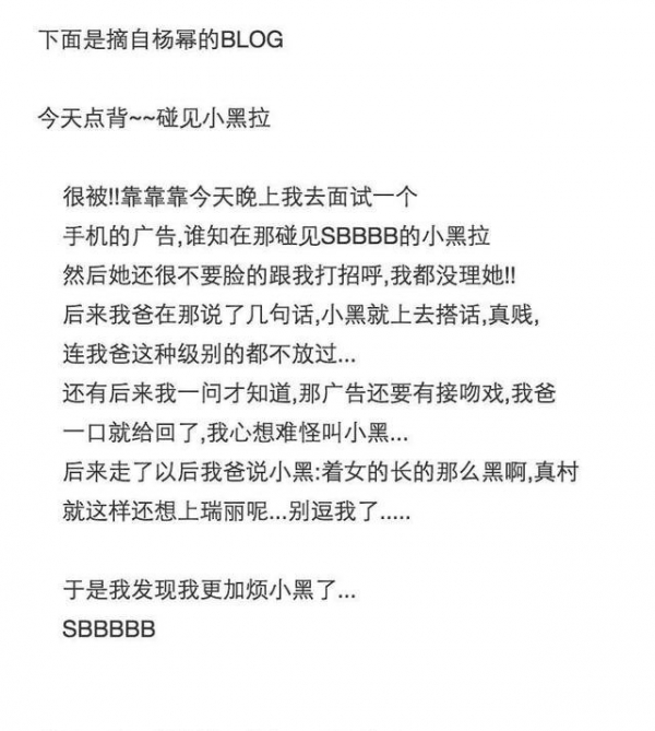 杨幂人气很旺所以很快就去转型当明星了。她也的确是血雨腥风的黑红体质,刚开始出道就被天涯抓了谈资,翻她的博客说她在网上直接骂另一个瑞丽模特小黑。