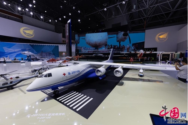 在中航工业展区,除了"20时代"战机家族的歼20、运20、直20以及鹘鹰等明星机型外,记者还在应急救援展区看到了运-20F100大型民用货机的模型,我们也期待着早日见到民用版运-20的身影。