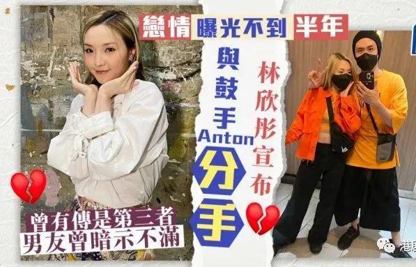 林欣彤于今年年初与乐队 ONE PROMISE 成员冯卓然(Anton)大方认爱,虽然期间曾被误会是第三者界入冯卓然前一段感情,但获男方力证她并不是。可惜二人恋情曝光仅逾半年,就在11月8日分别于社交平台Instagram上宣布已经分手一段时间。