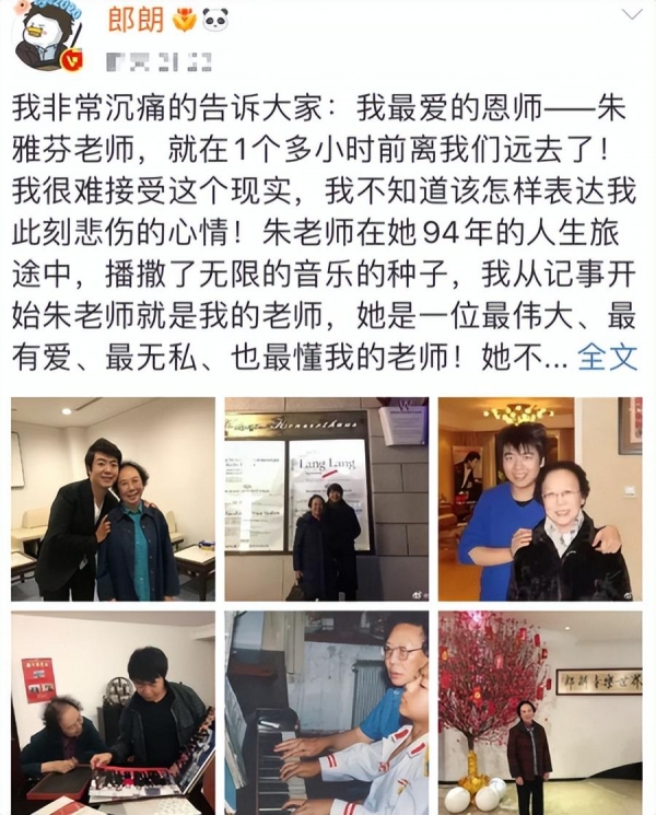 11月13日晚,知名国际钢琴演奏家郎朗发文悼念自己的恩师著名钢琴家朱雅芬,根据郎朗透露恩师朱雅芬享年94岁。作为郎朗音乐路上的引路人,郎朗表示:她不仅启蒙了我,更指引了我人生的道路,在我每一个关键的时刻或人生的路口,她都陪伴着我;她不仅是一位钢琴老师,更是我最亲最爱的亲人!