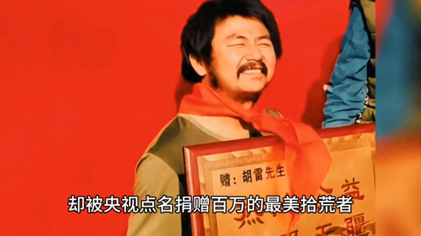 2010年4月14日,青海玉树发生地震,胡雷了解到灾情后立马通过红十字会捐出100元。可能100元对很多人来说都微不足道,可是对他来说,这100元是他不知道翻了多少个垃圾桶,攒了多少个废纸箱饮料瓶才换来的。