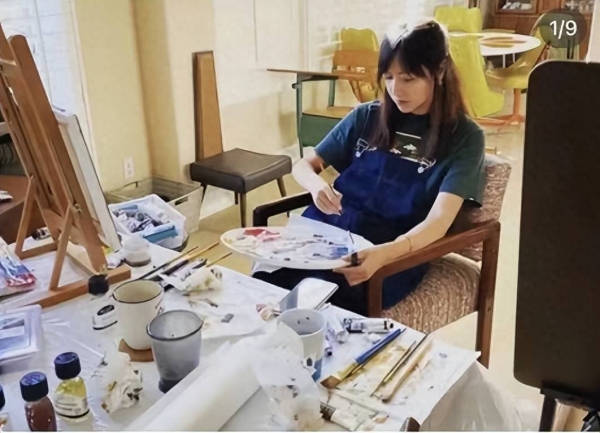 徐静蕾有着才女的赞誉,不单单是文学作品上的表现,也在其他方面有所展现,比如在绘画方面。徐静蕾一身工装的造型,画笔和画盘在她手中摆弄,整个人看上去非常的恬静, T恤搭配工装裤,安安静静绘画的模样,给人以非常舒适的感觉。