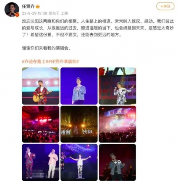 "人生路上的相逢,常常叫人惊叹、感动。我们彼此的爱与成长,从很遥远的过去,照进温暖的当下,也会绵延到未来,这感觉太奇妙了!希望这份爱,不但不要变,还能去到更远的地方。"演唱会结束的当晚,任贤齐在自己的微博上写下了这样一段话。
