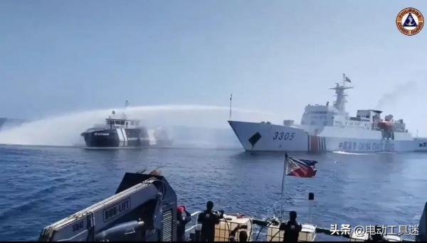 菲律宾船只在南海航行时,突然改变航向,与中方船只发生碰擦,这是一种极不负责任的、危险的行为,加剧了南海的紧张局势。菲律宾非但没有承认错误反思己过,还大肆宣扬和扭曲事实,指控中方海警船对菲方船只使用高压水炮和撞击,造成一艘补给船的发动机"严重受损"。