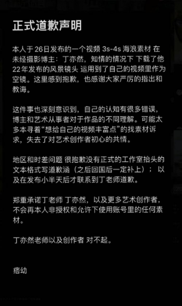 而痞幼本人也在社交账号发布了一则道歉声明,表示为了让视频素材更封堵,用了别人的视频。