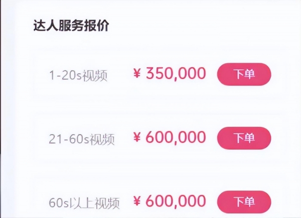 从抖音星图报价,单条广告1-20s价格为35万,单条广告21s以上价格为60万。